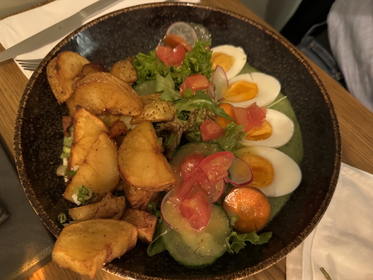A very decent place with many vegetarian options. The drinks and the food is amazing and yummy! The churros were the best, so soft inside and crispy outside, served with Dulche le latte which was thick. The spaghetti from the children’s menu was also yummy. Overall a very good local place in Bad Vilbel.
